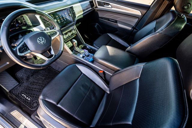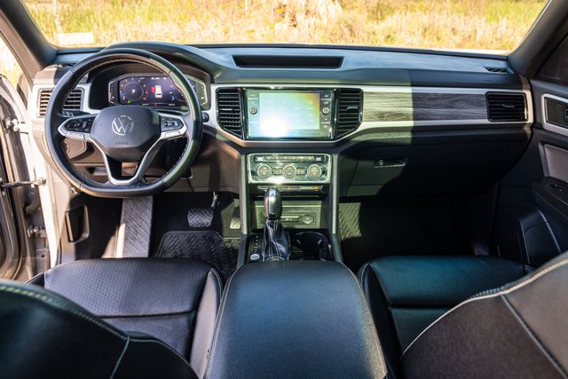 The SE with Technology Trim, that tis Atlas features, includes...20-inch wheels, a Hands-free liftgate, the 8-inch touchscreen, Wireless connectivity for CarPlay and Android Auto, Remote start, Adaptive cruise control, a Wireless charging pad and Front and rear parking sensors